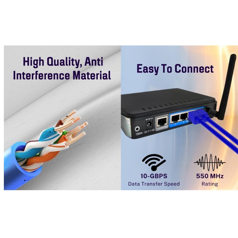 - Cat6 cable supports up to 10Gbps data transfer and 550MHz bandwidth for lag-free gaming, streaming, and downloads.